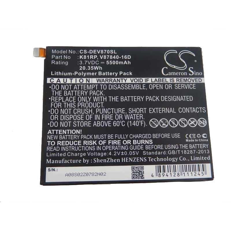Vuoi ricevere il prodotto in Italia? Batteria per Dell Venue 8 7000 / Venue 8 7840, 5500 mAh | MediaOutlet.it