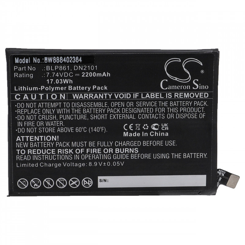 Bateria do OnePlus Nord 2 5G / Nord 2T, BLP861, 2200 mAh