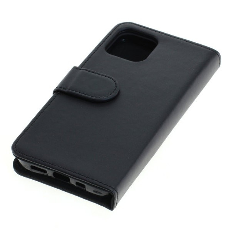 Wyjątkowe etui z klapką przeznaczone do iPhone 12, wykonane z wysokiej jakości sztucznej skóry, z obszytymi krawędziami i zapięciem na magnes.