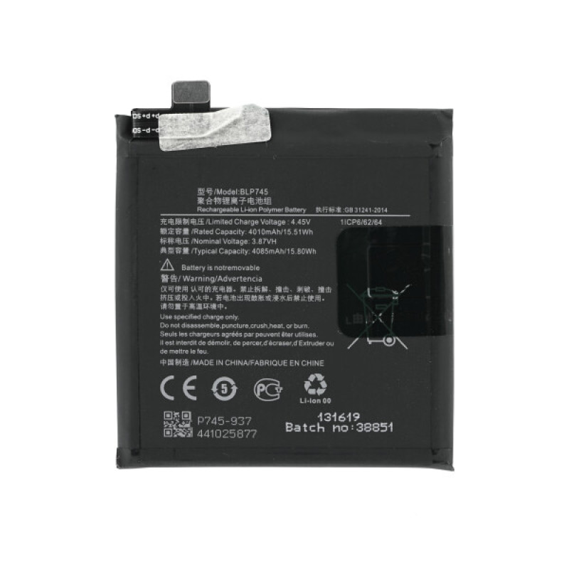 Bateria do OnePlus 7T Pro, BLP745, 3900 mAh